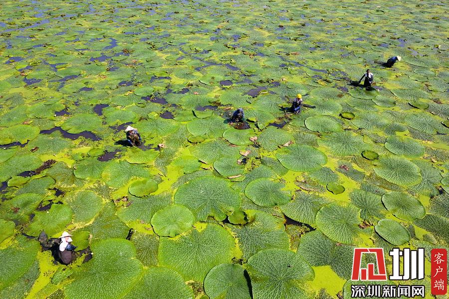 罕見的壯觀場(chǎng)面!萬(wàn)余畝芡實(shí)迎來收獲季