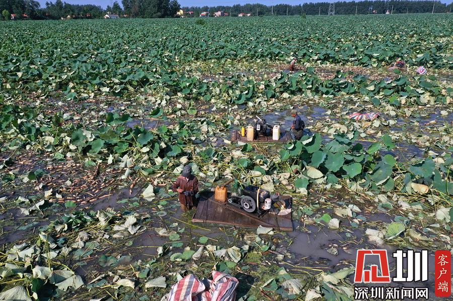 藕農(nóng)們抓緊采藕、清洗、包裝、運(yùn)輸,以供應(yīng)市場(chǎng)。