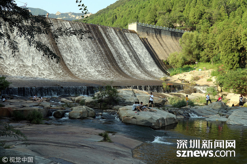 暴雨過后,泰山西溪百丈崖,瀑布猶如玉龍,宛如白雪,從崖巔凌空而降,不少市民及游客駐足壯觀的瀑布前,流連忘返。