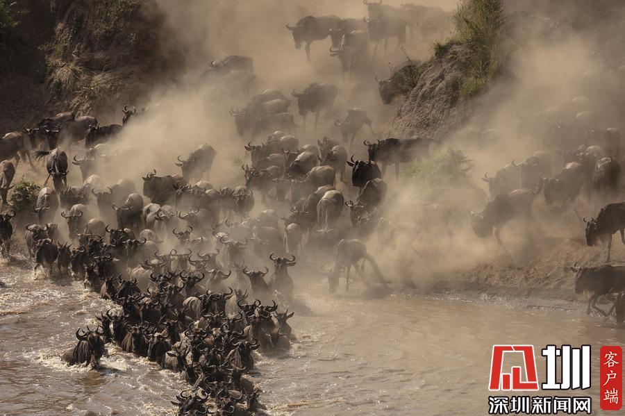 非洲角馬大軍集體遷徙 勇渡致命河流上演“生死時(shí)速”