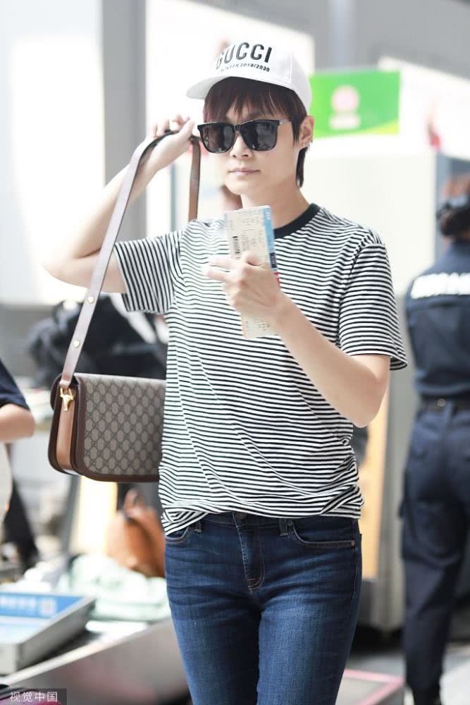 李宇春條紋裝扮現(xiàn)身機場,青春活力,人氣爆棚