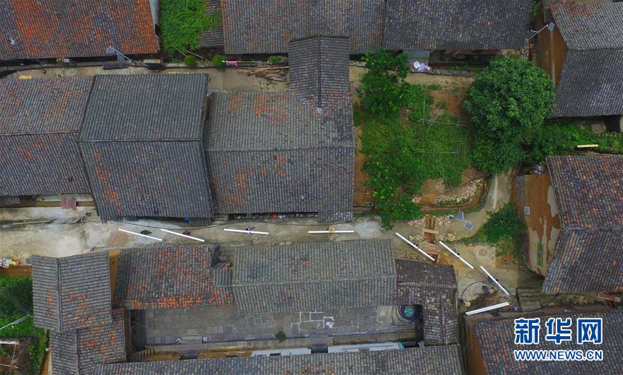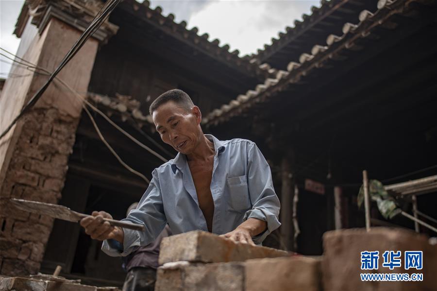 在廣西融安縣大良鎮(zhèn)古蘭村古蘭屯,村民在修繕古民居(8月18日攝)。 新華社記者 黃孝邦 攝