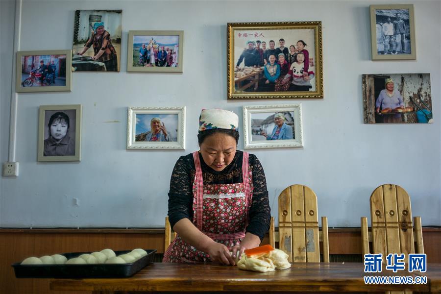 8月29日,付艷梅在列巴房將發(fā)酵好的面團揉捏成型。新華社記者張豪夫攝