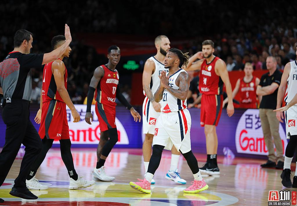 一位法國隊(duì)犯規(guī)后正在等待裁判的判罰結(jié)果。