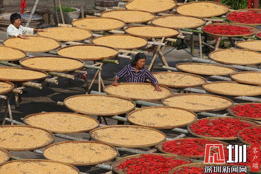 呈坎古村曬秋忙