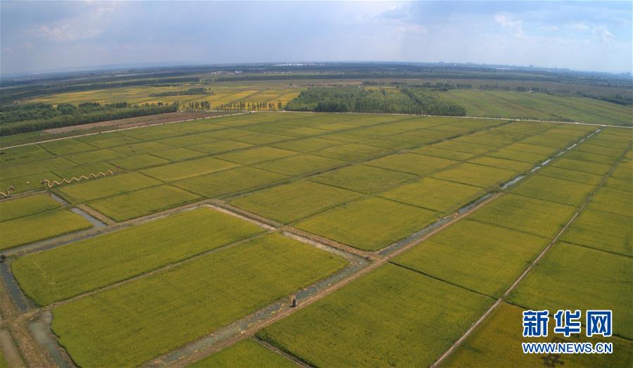 黃河水灌溉的青銅峽市葉盛鎮(zhèn)地三村農(nóng)田(9月1日無人機拍攝)。新華社記者劉詩平攝