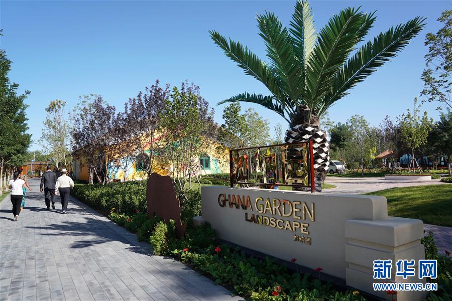 9月18日,參觀者在北京世園會加納展園內參觀。新華社記者 鞠煥宗 攝