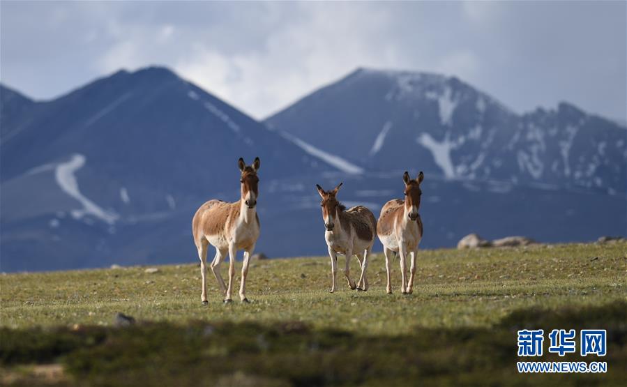 西藏札達(dá)縣香孜鄉(xiāng)熱布加林牧場(chǎng)上的藏野驢(7月29日攝)。新華社記者晉美多吉攝