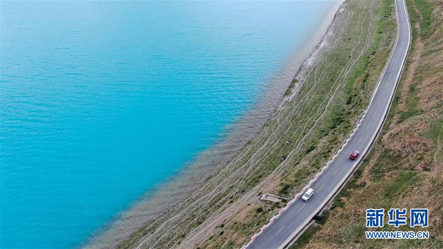 普姆雍錯(cuò)湖緊挨著公路,是自駕游的理想目的地(9月19日無(wú)人機(jī)拍攝)。新華社記者晉美多吉攝