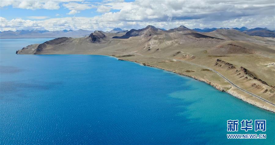 8月31日無(wú)人機(jī)拍攝的羊卓雍錯(cuò)及邊上的307省道。新華社記者晉美多吉攝