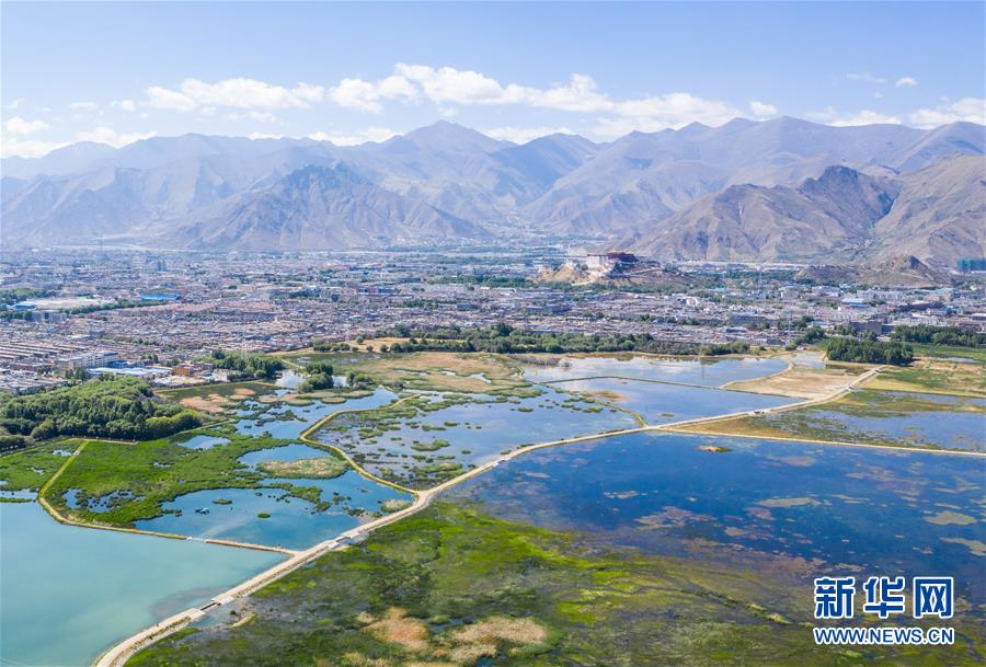 西藏拉魯濕地風(fēng)光(6月5日無(wú)人機(jī)拍攝)。新華社記者普布扎西攝