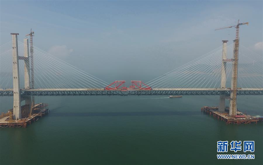 福平鐵路平潭海峽公鐵兩用大橋元洪航道橋主橋正在合龍(6月5日攝)。新華社記者林善傳攝
