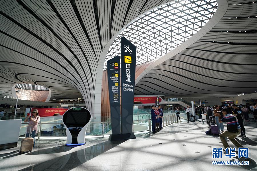 這是9月25日拍攝的北京大興國際機(jī)場航站樓內(nèi)部。新華社記者鞠煥宗攝