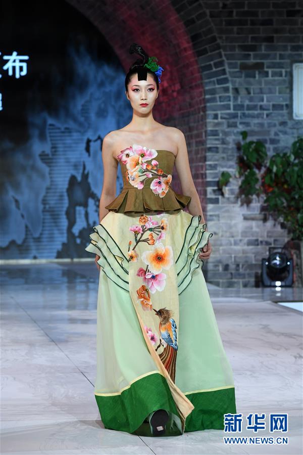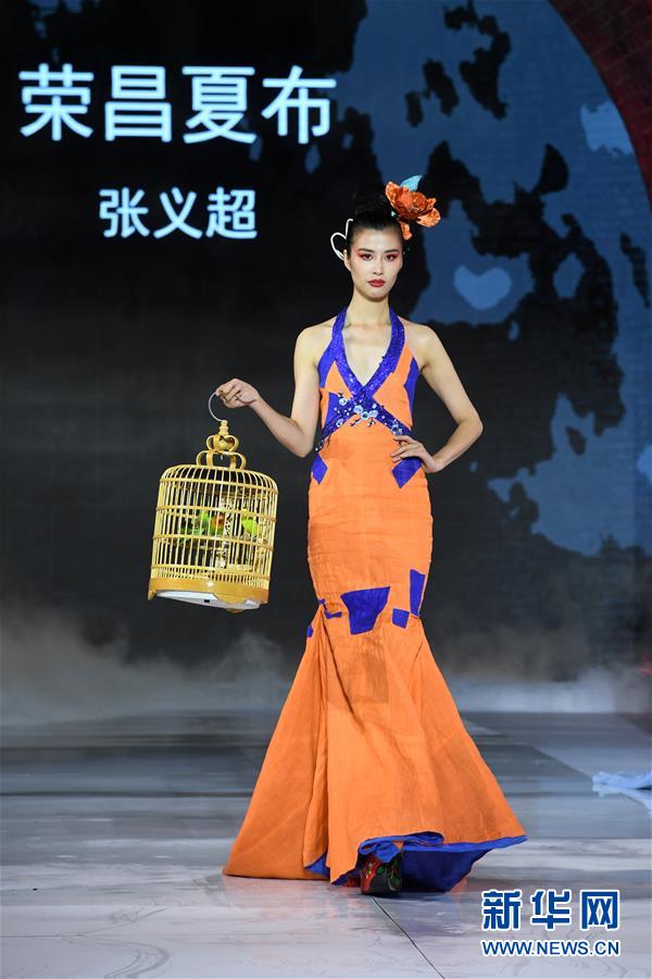 9月25日,模特在榮昌夏布·張義超非遺時尚大秀上展示時裝設(shè)計(jì)師張義超的時裝作品。