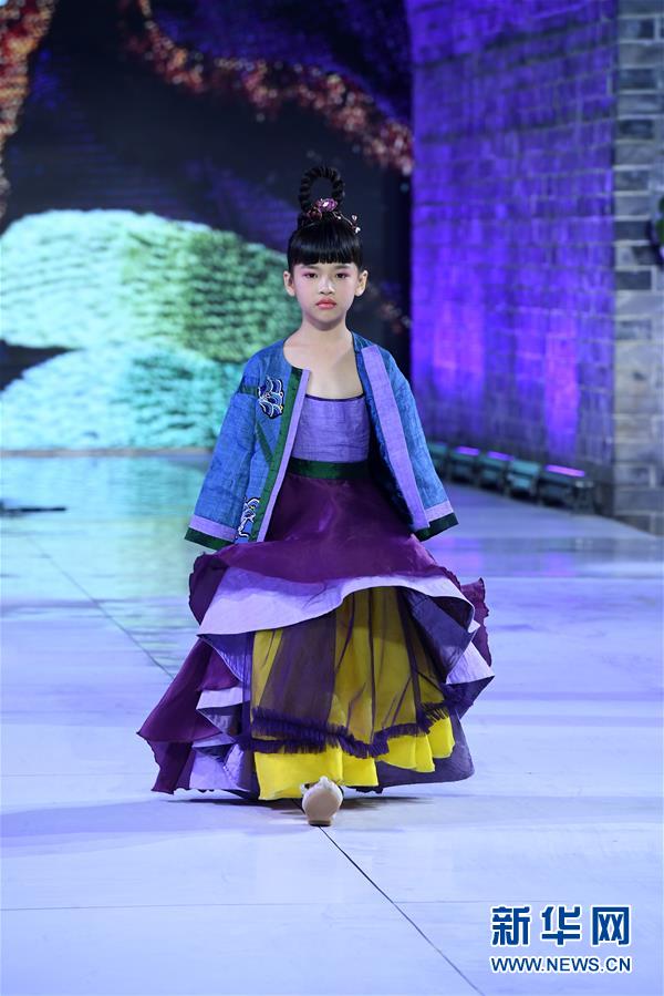 9月25日,小模特在榮昌夏布·張義超非遺時尚大秀上展示時裝設(shè)計(jì)師張義超的時裝作品 新華社記者 唐奕 攝