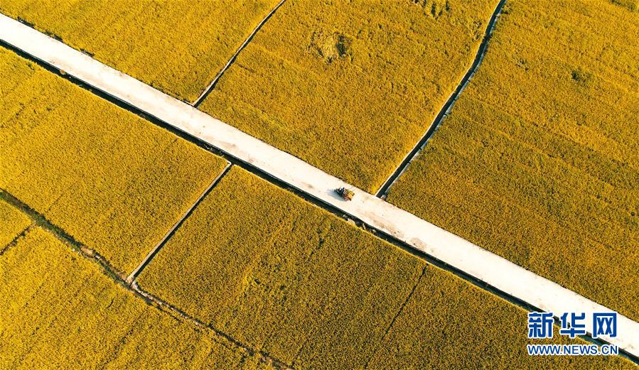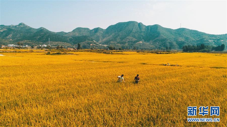 這是9月30日無人機拍攝的河北省涉縣白芟村的稻田。 近日,位于太行山下的河北省涉縣白芟村上千畝水稻逐漸成熟。從空中俯瞰,猶如一塊塊“調色盤”,美不勝收。 新華社記者 王曉 攝