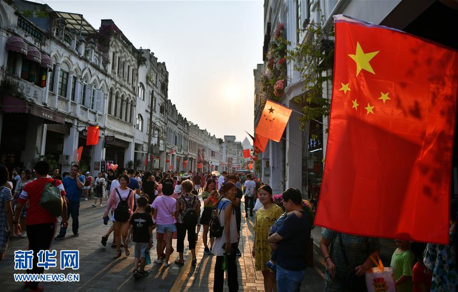 10月1日,游客在??隍T樓老街參觀游玩。當(dāng)日是國(guó)慶節(jié),全國(guó)各地的人們用各種方式歡度節(jié)日。新華社記者 郭程 攝