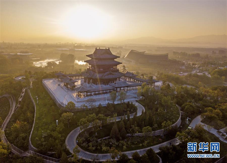 北京世園會園區(qū)內(nèi)的永寧閣(10月7日無人機拍攝)。新華社記者才揚攝
