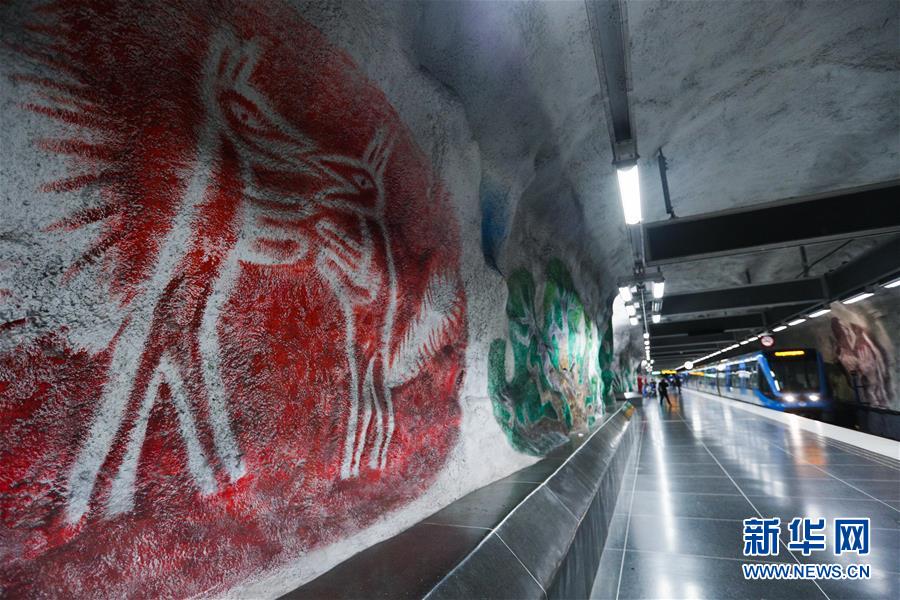 10月8日,在瑞典斯德哥爾摩,一列地鐵抵達一處地鐵站。新華社記者鄭煥松攝