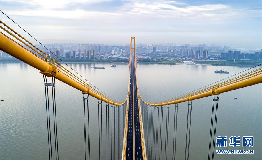 武漢楊泗港長江大橋(9月25日無人機拍攝)。新華社記者熊琦攝