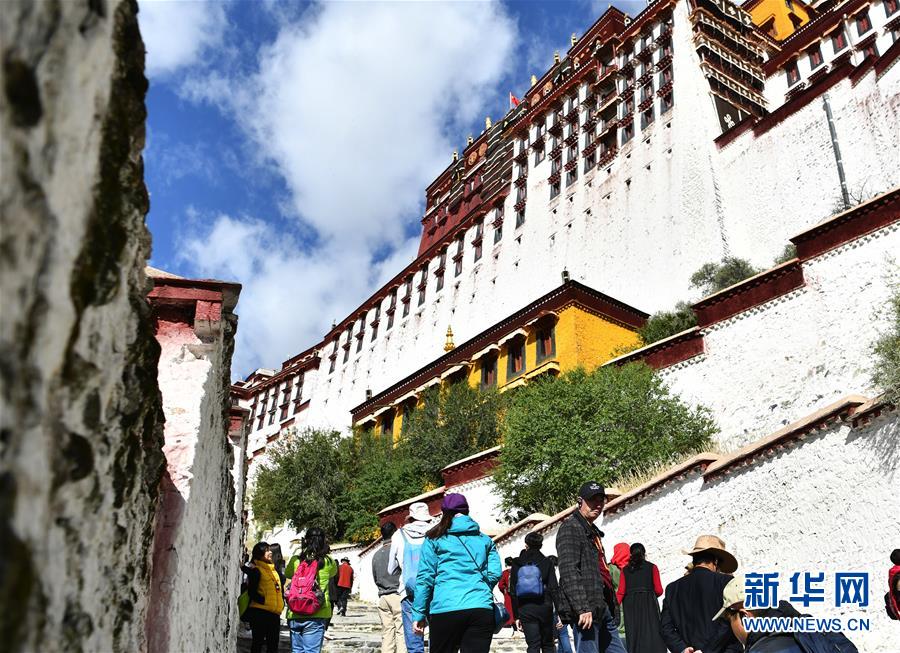 10月15日,游客在布達拉宮景區(qū)游覽。 根據(jù)西藏自治區(qū)《第三輪“冬游西藏”市場促進優(yōu)惠政策》,第三輪“冬游西藏”時段為2019年10月15日至2020年3月15日,共計5個月。除寺廟景區(qū)外,全區(qū)國有3A級(含3A級)以上景區(qū)免費游覽,國有3A級以下和非國有A級景區(qū)門票在淡季價格基礎(chǔ)上減半。 新華社記者 李鑫 攝