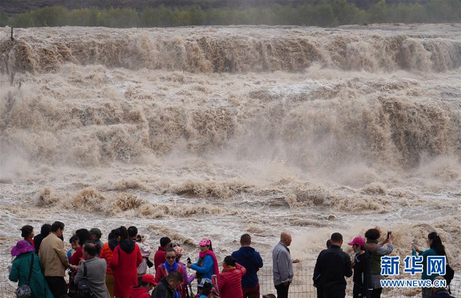 壺口瀑布水量增大 引眾多游客觀賞