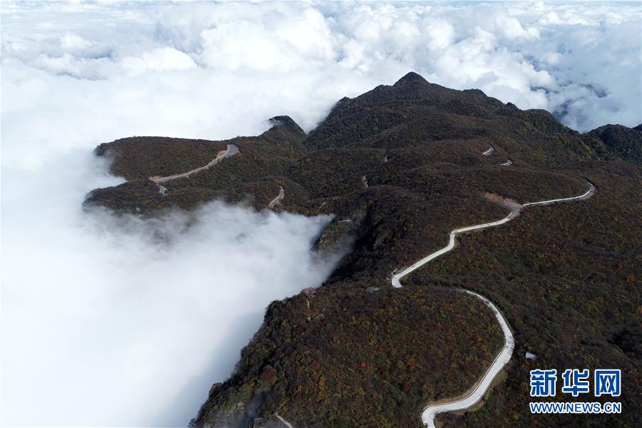 10月16日拍攝的漢中市南鄭區(qū)龍頭山風景區(qū)(無人機拍攝)。 新華社記者 張博文 攝