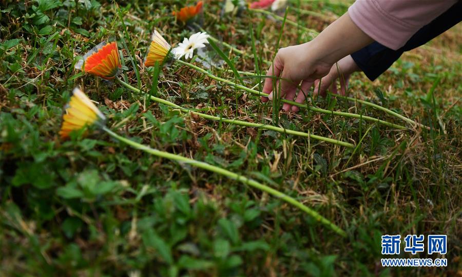 10月19日,參與秋祭活動的民眾在活動現(xiàn)場獻(xiàn)花。 新華社記者 陳斌 攝