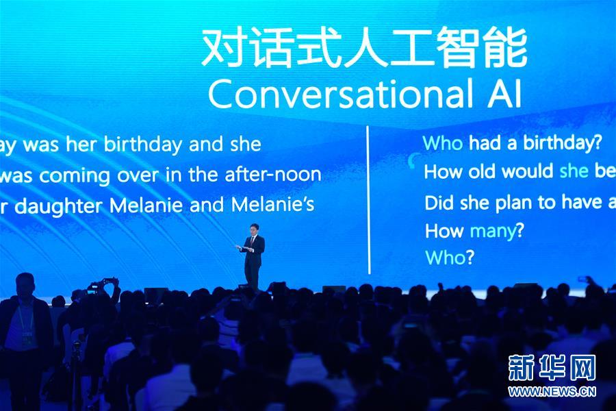 10月20日,微軟公司代表在介紹“統(tǒng)一自然語(yǔ)言預(yù)訓(xùn)練模型與機(jī)器閱讀理解”。新華社記者 黃宗治 攝