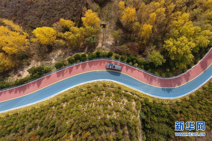 車輛行駛在山西省太原市西山旅游公路上(10月22日無(wú)人機(jī)拍攝)。