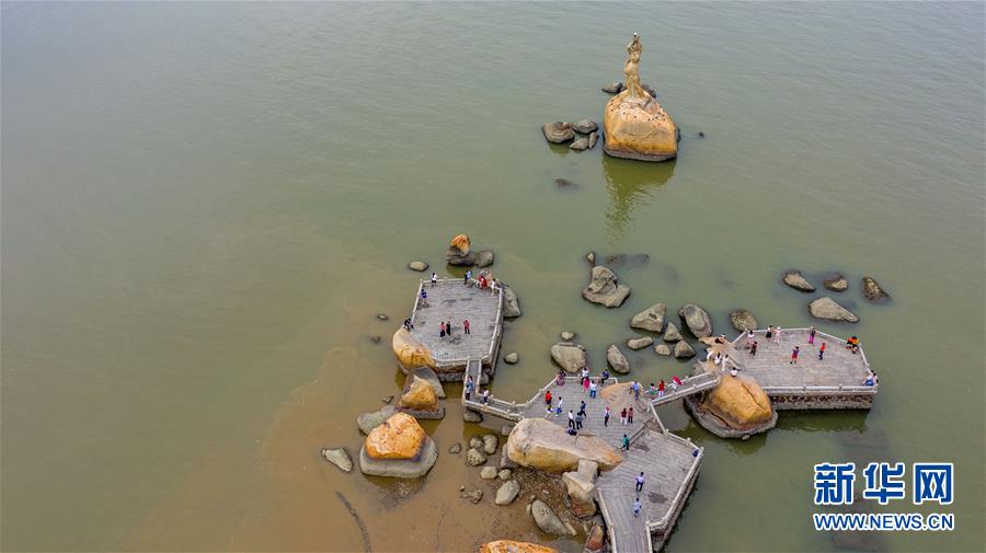 10月24日下午無人機拍攝的珠海標志性景觀——珠海漁女。2018年10月23日,港珠澳大橋正式開通。新華社記者張金加攝