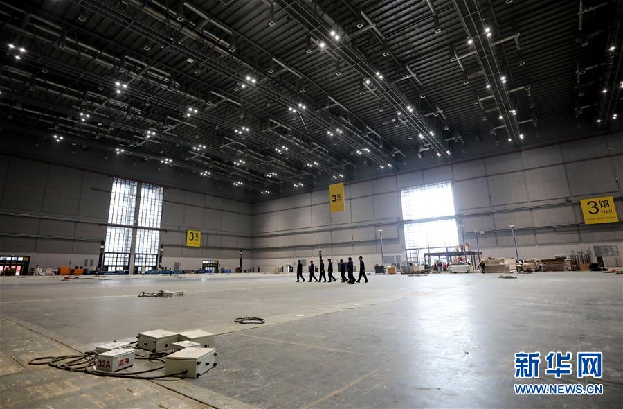 這是10月25日拍攝的正在進(jìn)行裝飾施工的國(guó)家會(huì)展中心(上海)南廣場(chǎng)。 新華社記者 方喆攝