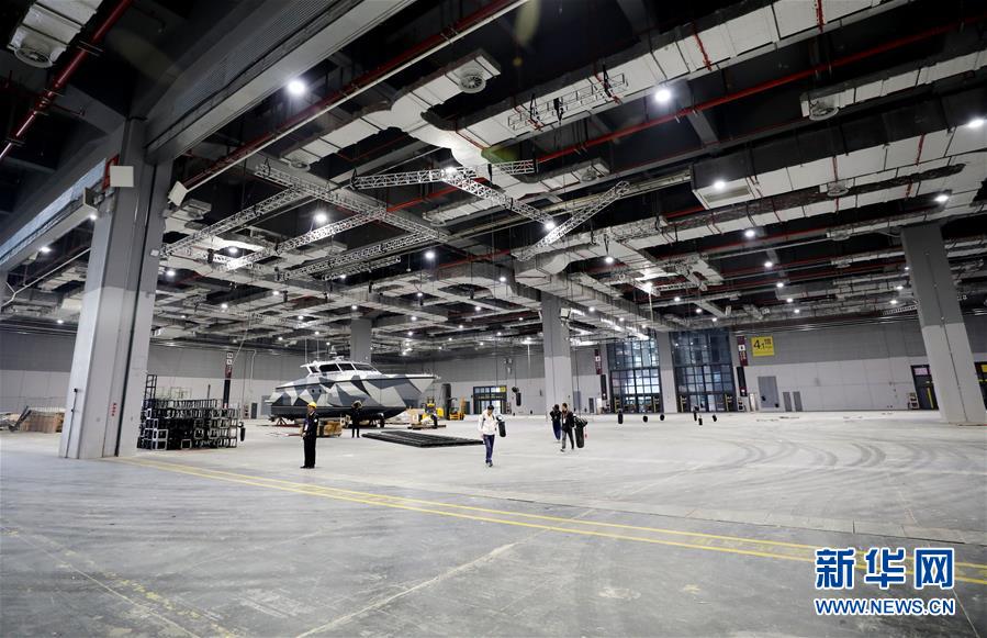 10月25日,在展館內(nèi),展臺(tái)框架搭建工作正在進(jìn)行。 新華社記者 方喆攝