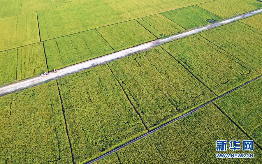 河南省洛陽市孟津縣會盟鎮(zhèn)的稻田(9月23日無人機拍攝)。新華社記者李嘉南攝