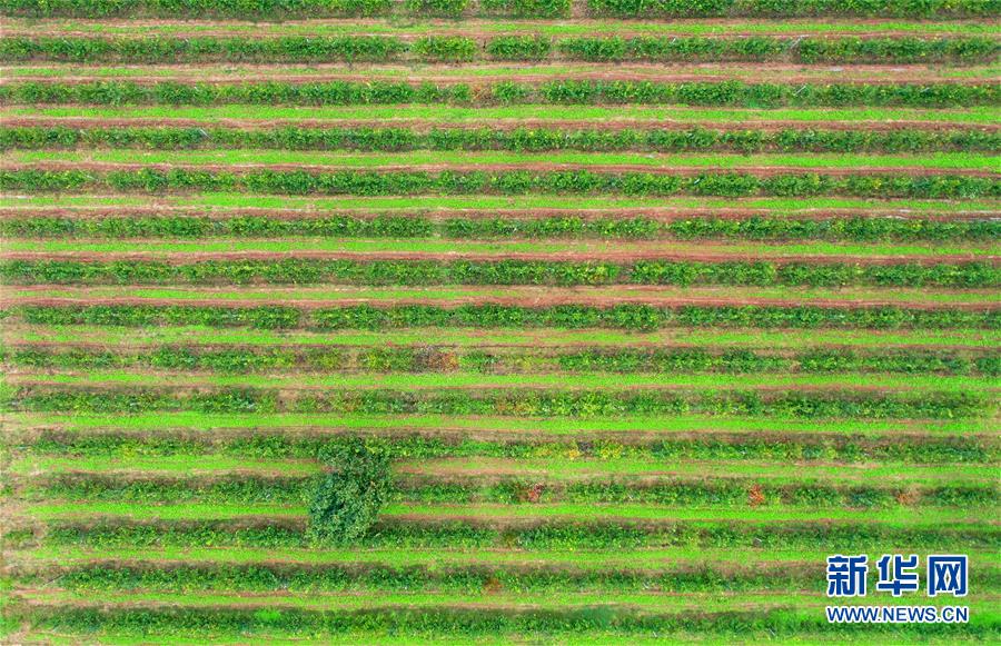 河南省洛寧縣馬店鎮(zhèn)關(guān)廟村金珠沙梨種植基地(10月9日無人機拍攝)。新華社記者李嘉南攝