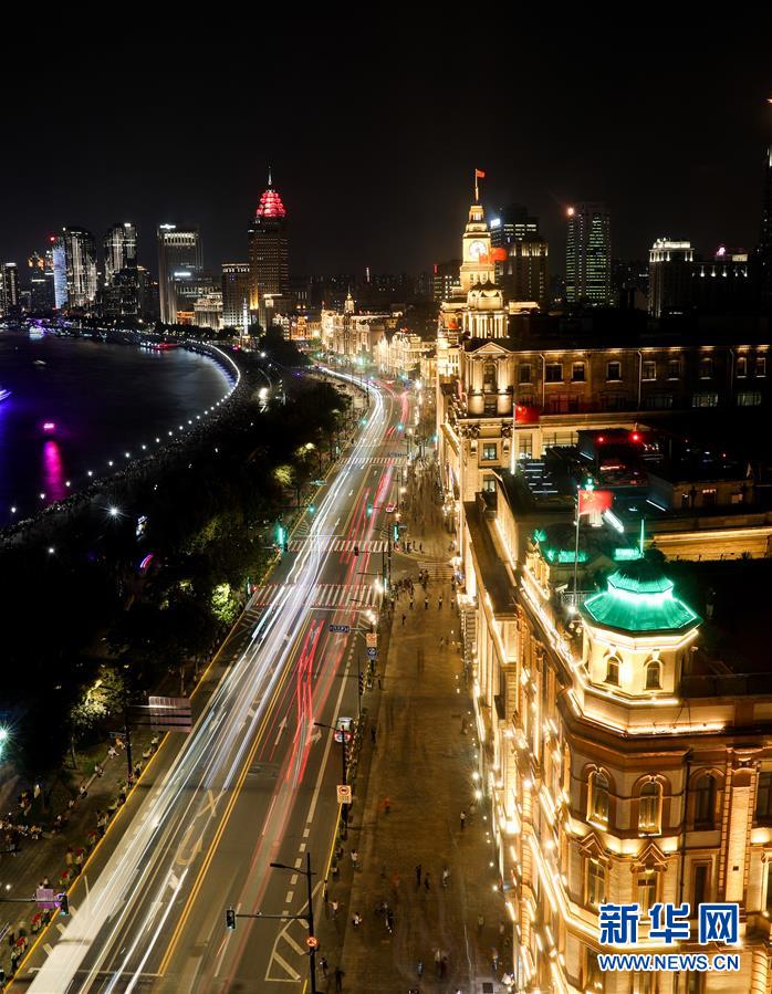 上海外灘燈光璀璨(9月30日攝)。 新華社記者 丁汀 攝