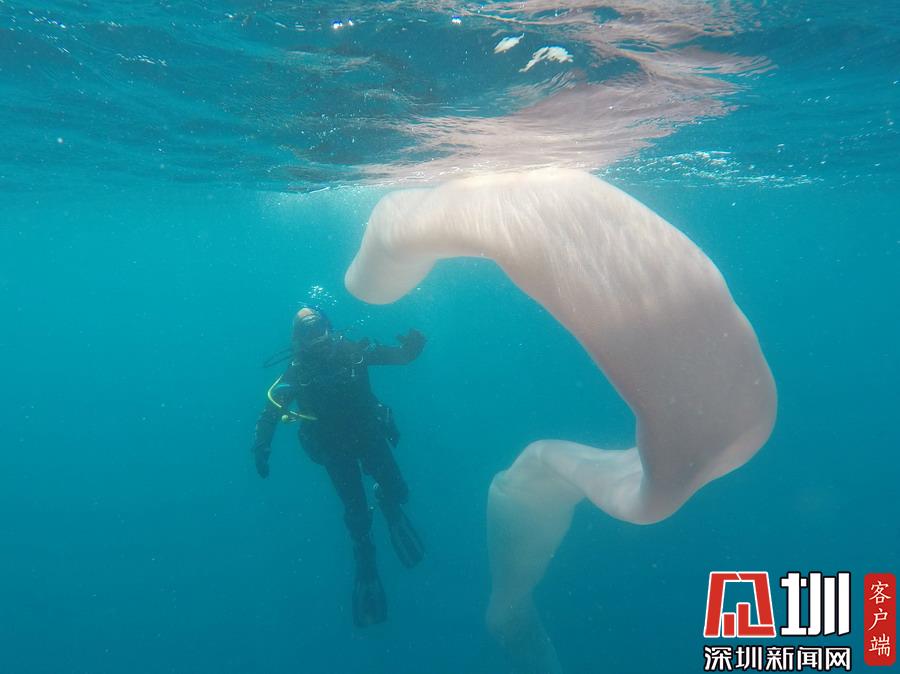 2018年11月13日?qǐng)?bào)道,10月25日,潛水員Andrew Buttle和好友Steve Hathaway來(lái)到新西蘭最活躍火山之一的懷特島附近海域潛水,正當(dāng)他們?cè)诤V袧撚沃畷r(shí),突然發(fā)現(xiàn)遠(yuǎn)處出現(xiàn)了一條巨大的白帶,在海水中搖曳生姿,仿若一個(gè)鼓鼓的風(fēng)向袋。帶著好奇心,Andrew和Steve慢慢靠近這個(gè)神秘的東西,仔細(xì)一看,發(fā)現(xiàn)這并非什么白色綢帶,也不是風(fēng)向袋,而是一條碩大的蛀船蟲(chóng),這個(gè)神奇的海洋軟體生物長(zhǎng)達(dá)整整8米多,上面附著著成千上萬(wàn)個(gè)有機(jī)體,模樣十分駭人。