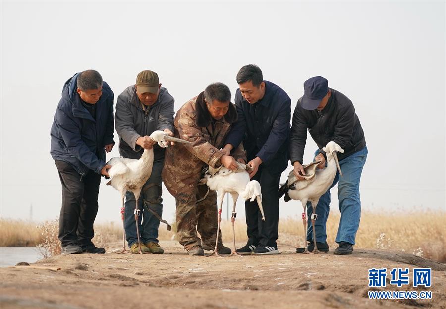 11月16日,在樂(lè)亭縣野生動(dòng)物保護(hù)協(xié)會(huì)大清河鳥(niǎo)類(lèi)救助站,工作人員放飛國(guó)家一級(jí)保護(hù)動(dòng)物東方白鸛。新華社記者楊世堯攝
