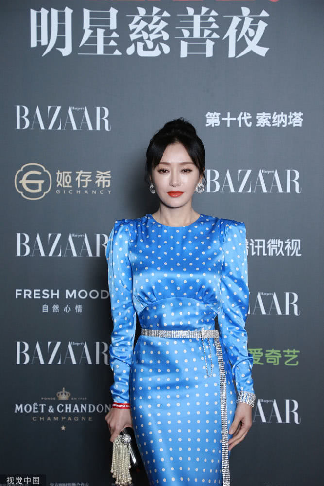 秦嵐藍(lán)裙清雅華貴大方。