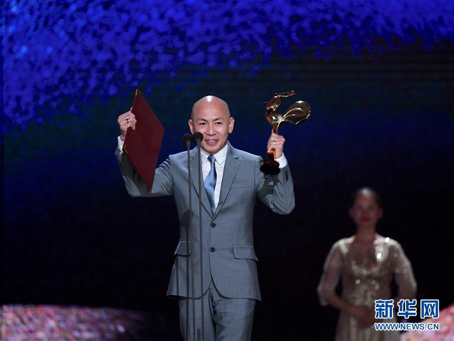 11月23日,電影《紅海行動》導(dǎo)演林超賢獲得最佳導(dǎo)演獎。 當(dāng)日,第32屆中國電影金雞獎頒獎典禮在福建廈門舉行。 新華社記者姜克紅攝
