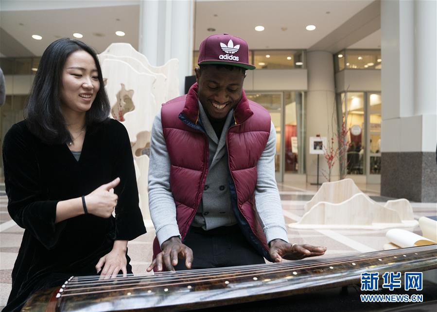 11月22日,在美國(guó)華盛頓,一名參加“北京日”文化廟會(huì)活動(dòng)的男子學(xué)習(xí)彈奏古琴。作為中國(guó)北京和美國(guó)首都華盛頓締結(jié)友好城市35周年慶?;顒?dòng)的一部分,“北京日”文化廟會(huì)22日在華盛頓羅納德·里根大廈和國(guó)際貿(mào)易中心舉行。新華社記者劉杰攝