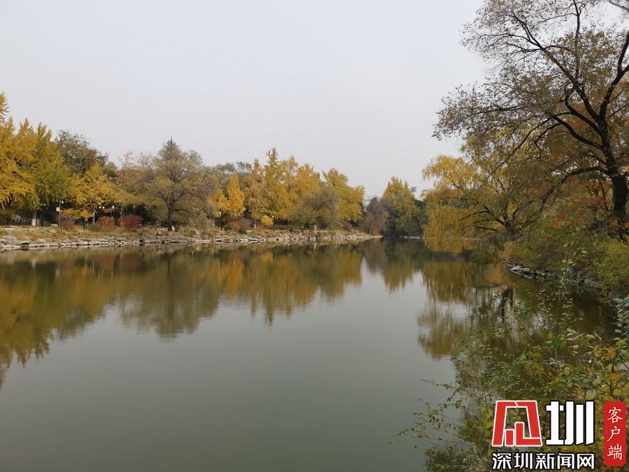 未名湖畔紅葉多姿、美麗寧?kù)o。