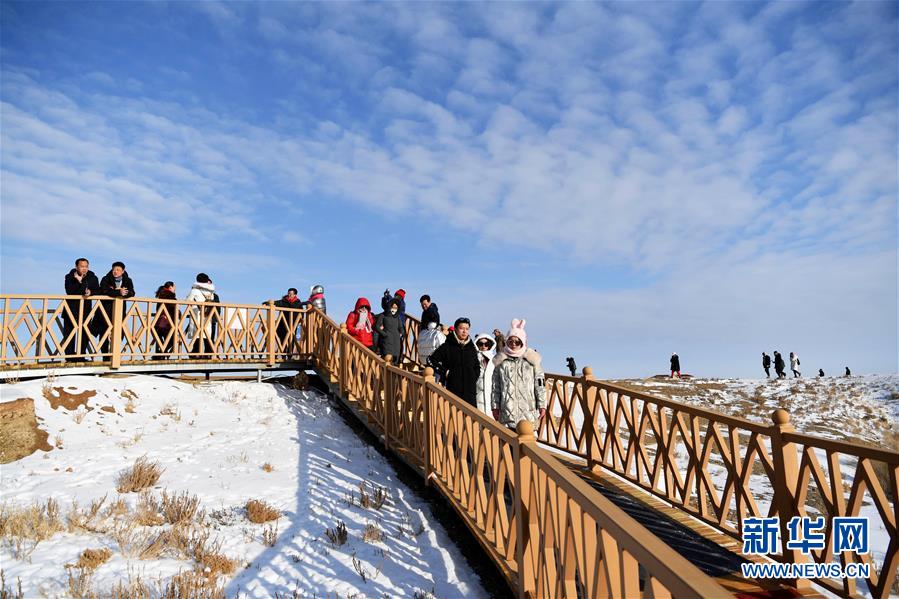 11月26日,來自全國百家旅行社的旅游業(yè)界人士在新疆福??h烏倫古湖海上魔鬼城景區(qū)參觀。新華社記者沙達提攝