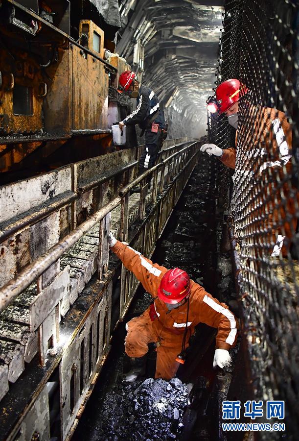 11月26日,在上灣煤礦12402綜采面內(nèi),工作人員對采煤機(jī)進(jìn)行檢修。 新華社記者 邵瑞 攝
