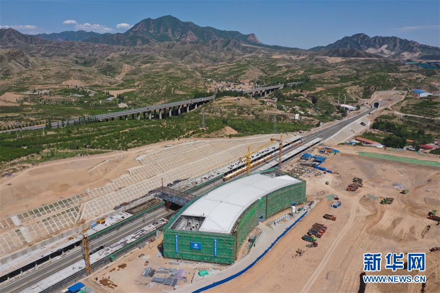 5月28日無(wú)人機(jī)拍攝的建設(shè)中的京張高鐵懷來(lái)站。新華社記者邢廣利攝
