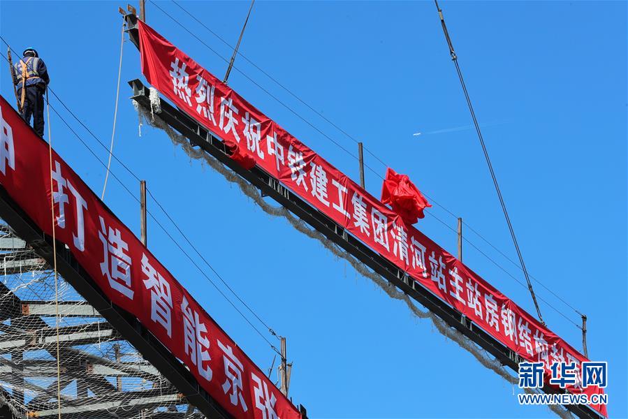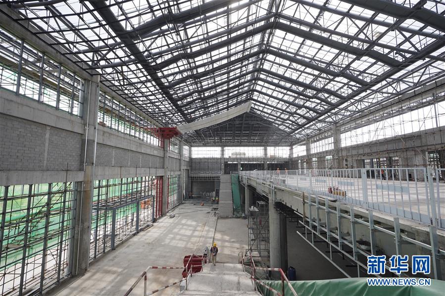 5月29日,工人在京張高鐵下花園北站施工。新華社記者邢廣利攝
