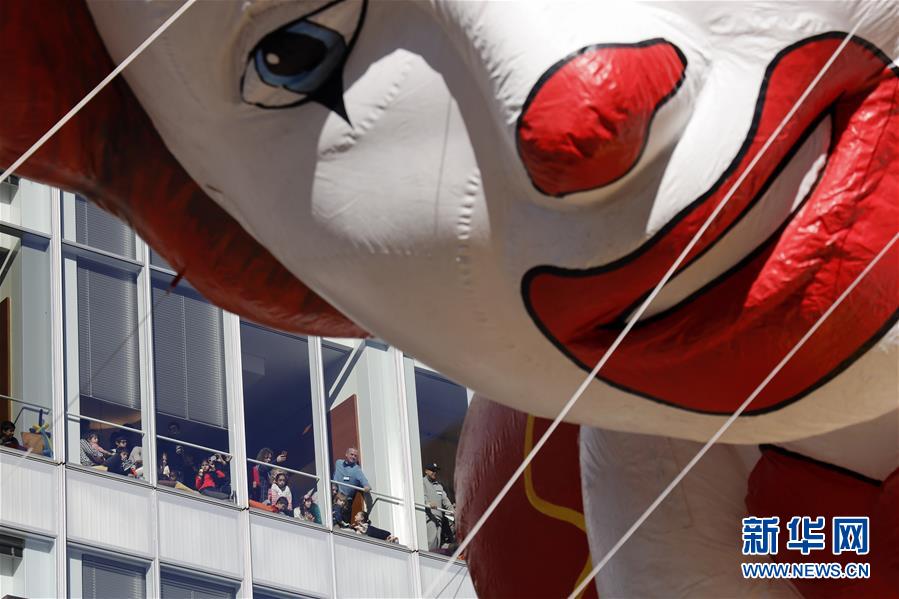 11月28日,在美國(guó)紐約,人們?cè)诖髽巧嫌^看感恩節(jié)大游行。 當(dāng)日,2019梅西感恩節(jié)大游行在紐約舉行,各式各樣的玩偶?xì)馇颉⒒ㄜ?chē)隊(duì)伍在曼哈頓的摩天大樓間穿行,吸引數(shù)百萬(wàn)民眾前來(lái)觀看。梅西感恩節(jié)大游行始于1924年,是全美規(guī)模最大的感恩節(jié)游行。 新華社記者 李木子 攝