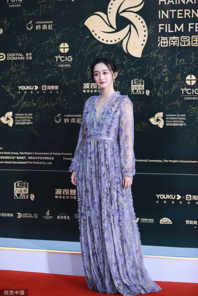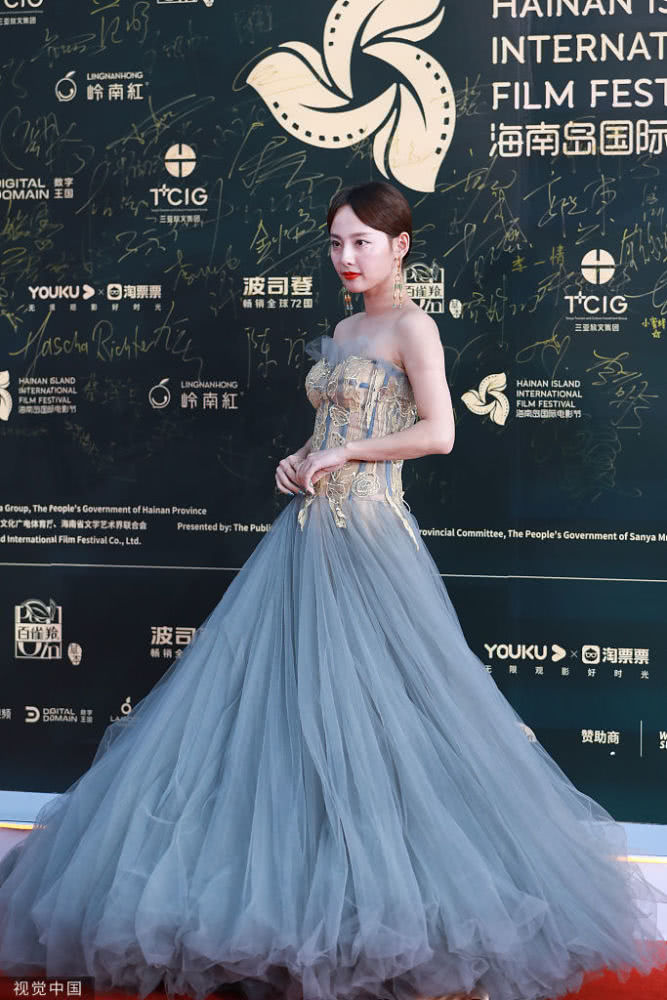 2019年12月1日,三亞,第二屆海南島國(guó)際電影節(jié)。何泓姍彎腰為張嘉倪整理裙擺,跟此前劇中傲嬌跋扈的“玫嬪”人設(shè)大不相同。