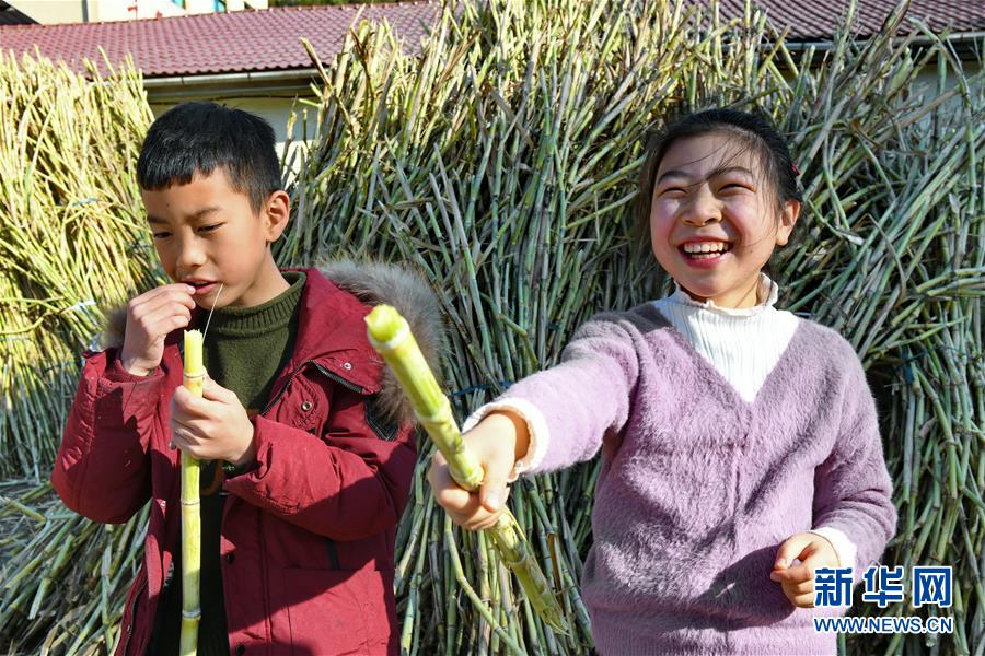 12月7日,松溪縣鄭墩鎮(zhèn)萬前村的小朋友在吃“百年蔗”。近期,福建省松溪縣鄭墩鎮(zhèn)萬前村特色甘蔗品種“百年蔗”進(jìn)入采收期,當(dāng)?shù)剞r(nóng)民砍蔗制糖,一派繁忙景象。近年來,萬前村大力發(fā)展蔗糖生產(chǎn),帶動(dòng)農(nóng)民脫貧致富,目前全村種植“百年蔗”面積達(dá)420畝。新華社記者張國俊攝