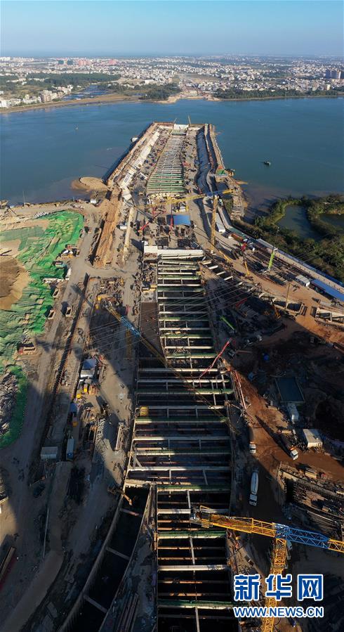 正在施工的??谖拿鳀|越江通道項目(12月14日無人機拍攝)。 ??谖拿鳀|越江通道項目是連接??谥鞒菂^(qū)和江東新區(qū)的重要紐帶,2018年底開工,全長4.38千米,其中隧道段2.72千米。據了解,目前項目總工程量已過半,將力爭在2020年4月份建成并實現功能性通車。 新華社記者 郭程 攝